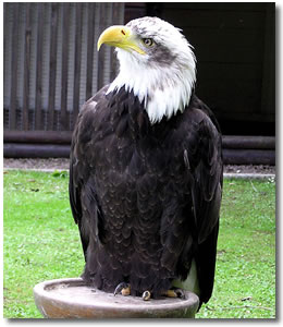 Águila calva: El macho pesa 2,3 kg y la hembra pesa 7kg, la altura del macho es de 1,8 m y la del femenino es de 2,5 m. El águila calva vive en América del Norte, está en peligro de extinción porque estuvo a punto de extinguirse en Estados Unidos a finales del siglo XX, pero su población se ha estabilizado y va en camino de ser retirada de la lista de especies en peligro del Gobierno de los Estados Unidos.