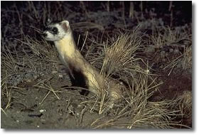 El hurón de pies negros: es un pequeño mamífero carnívoro de Norteamérica. Es un miembro de la diversa familia de los mustélidos que incluye comadrejas, visones, turones, martas, nútrias, y tejones. Está en peligro de extinción por lo que hay unas leyes muy estrictas para su protección; muy parecido al hurón doméstico, muchas veces es confundido con él.